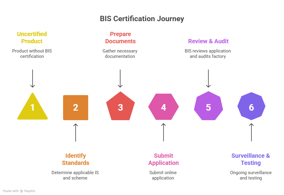 The BIS certification process, when stripped down, is straightforward: Identify → Prepare → Apply → Verify → Approve → Mark.